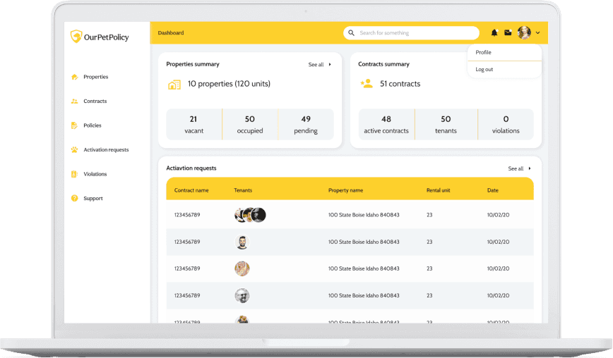 - Easy pet management platform for landlords and tenants